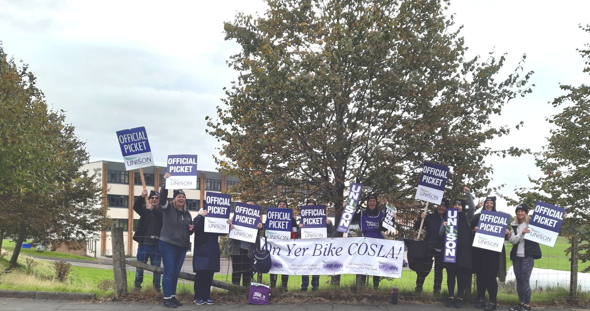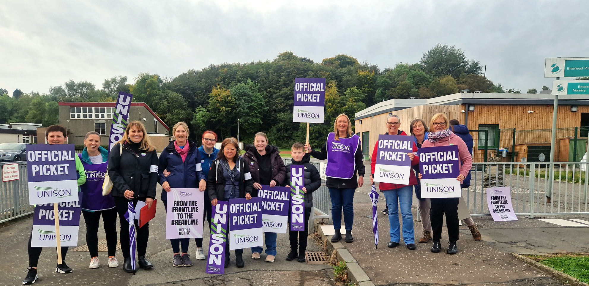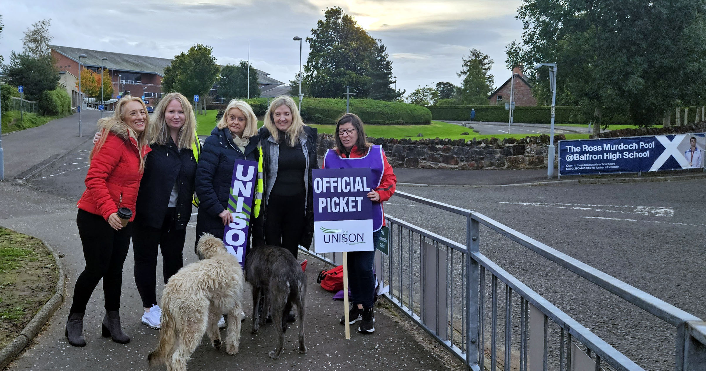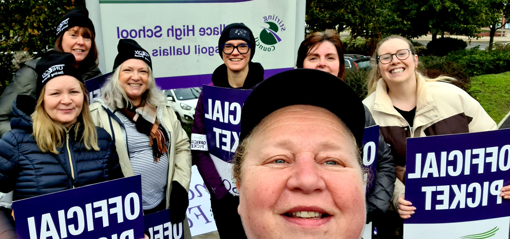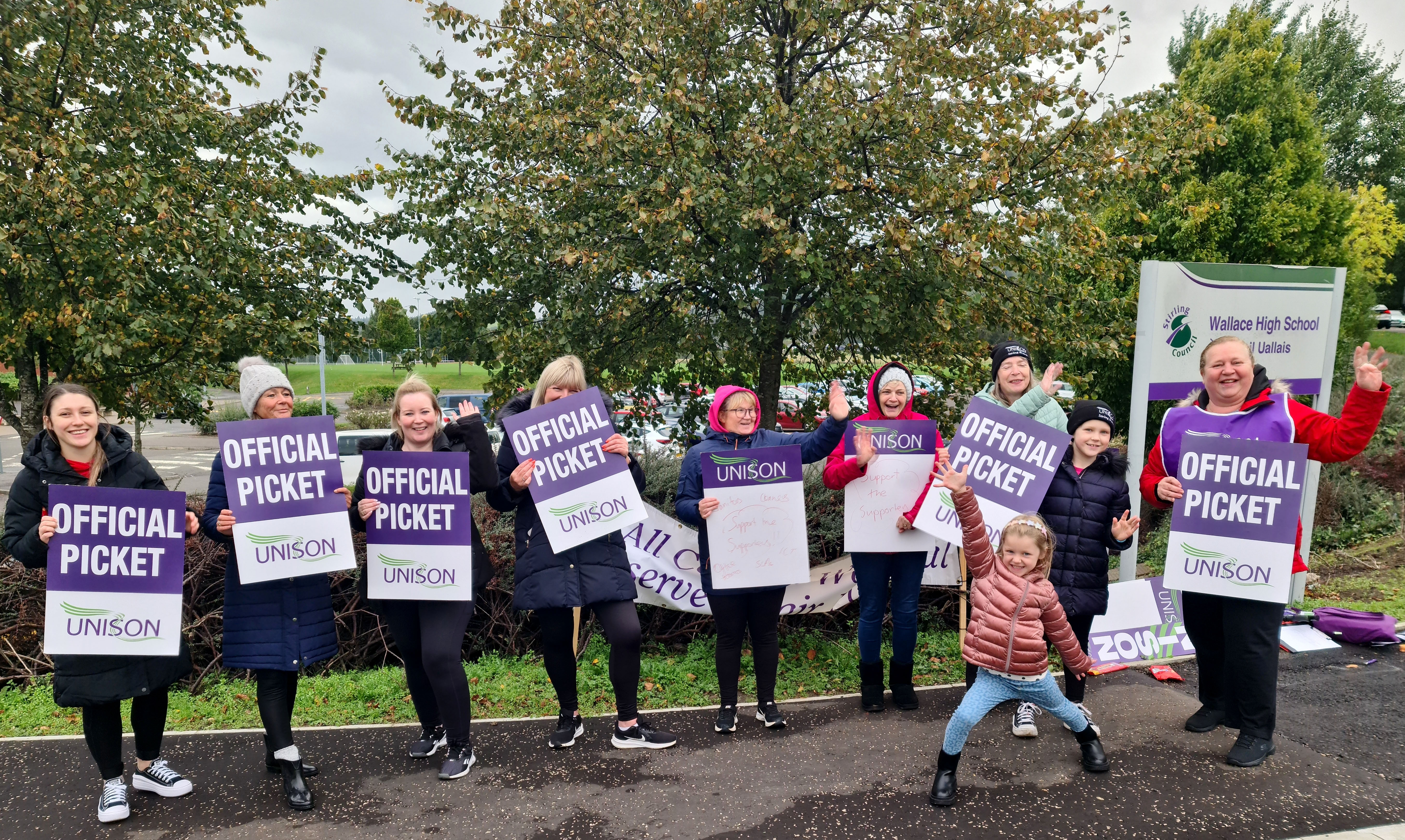 This week we have seen our fellow workers from Schools and Early Years settings on the picket lines striking for Fair Pay for all. Bannockburn Primary and High School, Balfron High, Braehead, Borestone, Callander, Fallin Primary, Raploch Campus, St Ninians Primary and Nursery, Stirling High, McLaren High, and Wallace High all came out on 26, 27, and 28 September, many bringing their children and some also brought their dogs along.