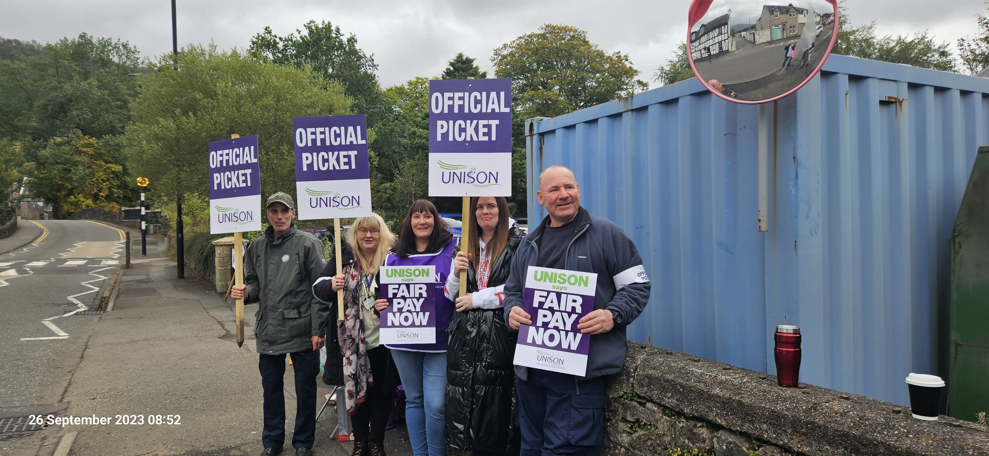 The public honked their horns and waved, and some local people came along with flasks of tea and coffee showing support for our members who are striking for fair pay for all council employees.