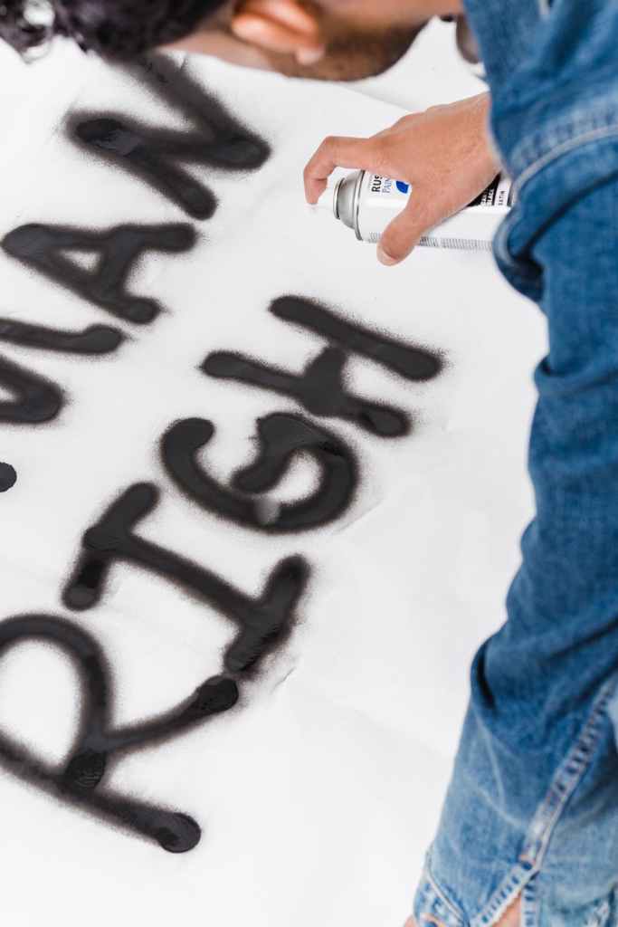 Previous Image Next Image person in blue denim jeans spray painting the word human rights Photo by Sora Shimazaki on Pexels.com